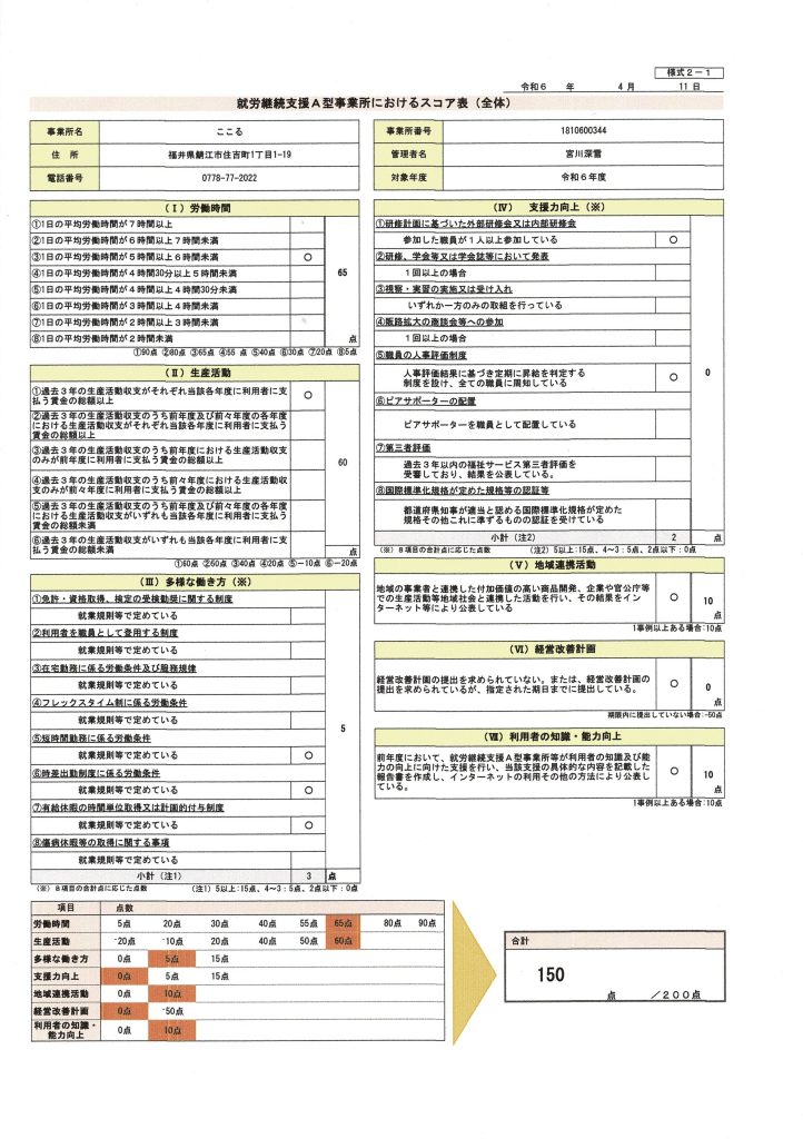 令和6年度のスコア表を公表します。